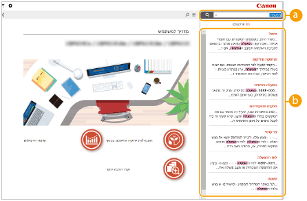 כדי להציג את חלון החיפוש. מכיל תיבת טקסט לביצוע חיפוש לפי מילת מפתח ולאיתור הדף שאתה מחפש.