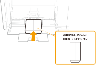טען את המעטפה כך שהשוליים עם הדש יפנו כלפי צד ימין כפי שמוצג באיור.