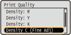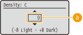2 | השתמש ב- / כדי לכוונן את הצפיפות.![]() כוונון הצפיפותהגדר ערך "+" כדי להגדיל את הצפיפות. הגדרת ערך "-" כדי להקטין את הצפיפות. |