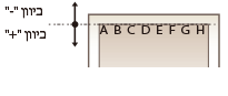 באפשרותך להשתמש באפשרות <Offset Y> ובאפשרות <Offset X> בתפריט ההגדרה של לוח ההפעלה כדי לכוונן את מיקומי ההדפסה עבור כל סוגי ההדפסה ללא קשר למקור הנייר. באפשרותך לכוונן את מיקום ההדפסה בטווח של -50.0 מ"מ עד +50.0 מ"מ בעליות של 0.5 מ"מ לכל כיוון: אנכי ואופקי. Offset Y/Offset X |