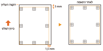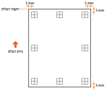 מודפסים. קבע את הכיוון ואת המרחק שיש לכוונן בהתאם לסימנים אלה. כשמיקום ההדפסה תקין, כל הסימנים מודפסים במיקום 5 מ"מ מהקצה הקרוב ביותר של הנייר.