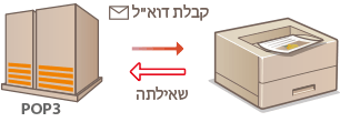 הדפסת דוא"ל מאפשרת לך להדפיס את ההודעה ואת קובצי התמונה שצורפו אליה מתוך דוא"ל שהתקבל משרת הדוא"ל POP3 מבלי להשתמש במחשב. ניתן לקבל הודעות דוא"ל באופן ידני וכן באופן אוטומטי במרווחים קבועים. כשנעשה שימוש בפרוטוקול SMTP, הודעות דוא"ל הנשלחות ישירות למכשיר ולא באמצעות שרת דוא"ל יודפסו.