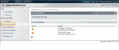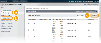 המצב של כל משימות ההדפסה מוצג ללא קשר להגדרות של ניהול מזהה המחלקה. הגדרות ברירת המחדל של היצרן מונעות חלק מהפעולות, כמו למשל מחיקת מסמך המיועד להדפסה או קטיעת משימת הדפסה, במצב משתמש כללי. אם ברצונך להפעיל מסמכים במצב משתמש כללי, היכנס למצב ניהול והפעל את האפשרות [Allow General User Job Operation]. מתן הרשאה למשתמשי קצה להפעיל מסמכים אם הזנת את שם המשתמש שלך כשנכנסת במצב משתמש כללי, שם המשתמש שלך יוצג רק במסמכים שהדפסת. לחץ על [Job No.] במסמכים המושהים ובמסמכים מאובטחים כדי להציג מידע מפורט. ניתן לבדוק את שם המשתמש ואת ספירת הדפים במסמך המודפס. |