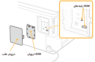 این بخش نحوه نصب کردن ROM اختیاری را در دستگاه توضیح می دهد. از ROM متصل به رابط های ROM در داخل درپوش عقب دستگاه استفاده می شود. قبل از نصب ROM، اقدامات احتیاطی موجود در نصب را بخوانید. | ![]() |