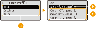 Text sRGB v3.0 (Canon)  Canon HDTV gamma 1.5 Canon HDTV gamma 1.8 Canon HDTV gamma 2.4 Graphics sRGB v3.0 (Canon)  Canon HDTV gamma 1.5 Canon HDTV gamma 1.8 Canon HDTV gamma 2.4 Image sRGB v3.0 (Canon)  Canon HDTV gamma 1.5 Canon HDTV gamma 1.8 Canon HDTV gamma 2.4 |