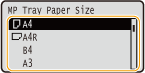 για να επιλέξετε <MP Tray Paper Size> και πατήστε