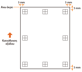 . Προσδιορίστε την κατεύθυνση και την απόσταση που πρέπει να προσαρμοστούν, με βάση αυτά τα σημάδια. Όταν η θέση εκτύπωσης είναι κανονική, όλα τα σημάδια εκτυπώνονται σε θέση 5 mm από το πλησιέστερο άκρο του χαρτιού.