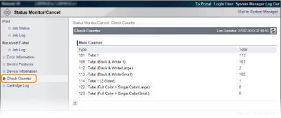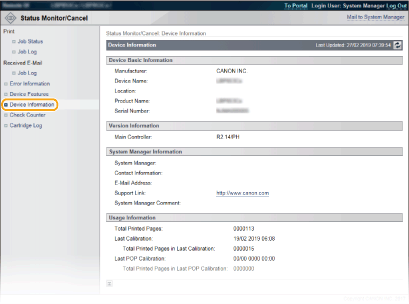 Εάν παρουσιαστεί κάποιο σφάλμα, αυτή η σελίδα θα εμφανιστεί εάν κάνετε κλικ στο μήνυμα που βρίσκεται κάτω από την επιλογή [Error Information] στη σελίδα πύλης (κύρια σελίδα).
