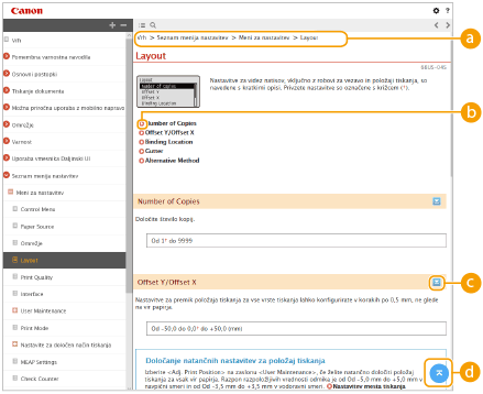 Kliknite nabor parametrov, da določite, kako bo prikazan priročnik Navodila za uporabo, npr. velikost znakov ali postavitev.