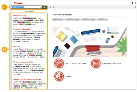 Kliknite za prikaz navodil za pregledovanje priročnika Navodila za uporabo, navodil za iskanje in drugih informacij.