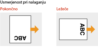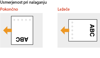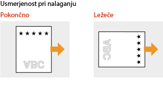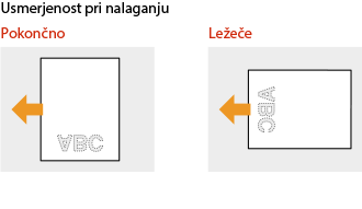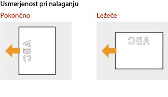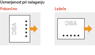 Če uporabljate potiskani papir z logotipom, pri nalaganju pazite na pravilno smer papirja. Papir naložite pravilno, da se bo natisnil na tisto stran, na kateri je logotip.