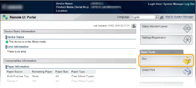 Zaženite Remote UI (Oddaljeni uporabniški vmesnik) in se prijavite v način za upravljanje.