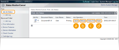Preverite lahko stanje tiskanja (dokumenti, ki se tiskajo, in dokumenti, ki čakajo na tiskanje) dokumentov, za katere je izbrano tiskanje iz računalnika, in izbrišete dokumente ali začasno prekinete njihovo tiskanje.