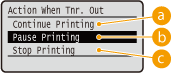Če pritisnete ( ), ko je izbrana možnost <Off>, je trenutno tiskalno opravilo v teku preklicano. |