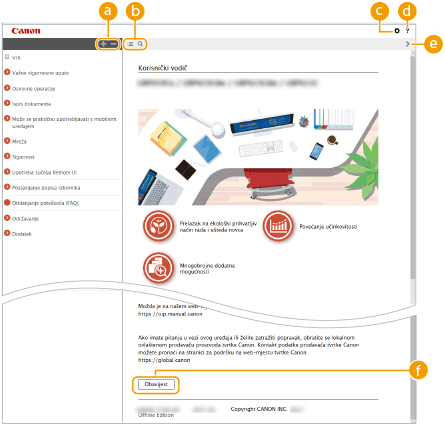 Kliknite da biste prikazali informacije o tome kako pregledati Korisnički vodič, kako pretraživati itd.