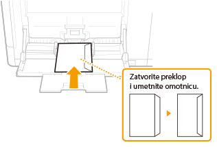 Prije umetanja omotnica ili dopisnica obavite pripremne radnje poput njihovog izravnavanja. Obratite pažnju i na usmjerenje omotnica ili dopisnica te na to koja je strana okrenuta prema gore. Imajte na umu da se ni omotnice ni dopisnice ne mogu umetati u ladicu za papir.