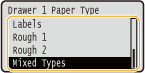 Odaberite jednu od mogućnosti u rasponu od <Drawer 1 Paper Type> do <Drawer 5 Paper Type> i pritisnite