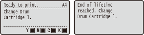 Kada se prikaže poruka <End of lifetime reached. Change Drum Cartridge N. (Istekao vijek trajanja. Zamijenite spremnik s bubnjem N.)>, ispis se privremeno prekida. Kako biste nastavili ispis, pritisnite  (  ). |