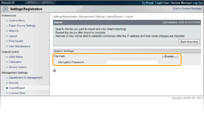 Definirajte datoteku s postavkama koju želite uvesti i unesite lozinku.