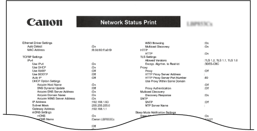 Мрежа) под формата на списък. Отпечатва се и информацията за сигурността, включително настройките на филтъра за адреси и настройките на IPSec.