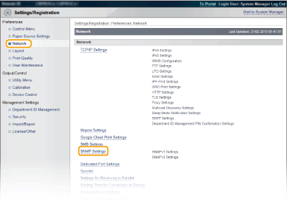 Протоколът SNMP (Simple Network Management Protocol) е протокол за наблюдение и управление на комуникационни устройства в мрежата чрез MIB (Management Information Base). Устройството поддържа SNMPv1 и SNMPv3, чиято сигурност е подобрена. Можете да проверите състоянието на устройството от компютър, когато отпечатвате документи или използвате Remote UI (Потребителски интерфейс за отдалечено управление). Можете да активирате или SNMPv1, или SNMPv3, или и двата протокола едновременно. Задайте настройките за всяка версия според мрежовата среда и целите си.