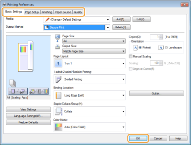 Изберете [Secure Print] в [Output Method].