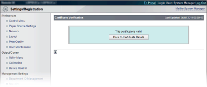 Проверете подробностите за сертификата и щракнете върху [Certificate Verification].