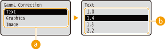 Задайте тази настройка, когато искате да регулирате яркостта на разпечатките. <1.4> е стандартната настройка (без корекция), а колкото по-голяма е стойността на настройката, толкова по-тъмен ще е печатът.