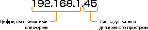 IP-адреса складається з чотирьох чисел, розділених крапками (.) (наприклад, 192.168.1.45). Кожне число має бути в діапазоні від 0 до 255. Зазвичай перші три числа мають збігатися з першими трьома числами для маршрутизатора, оскільки вони є спільними в мережі. Останнє число має відрізнятися від останнього числа для інших пристроїв (наприклад, 45 в адресі 192.168.1.45).