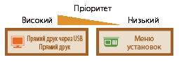 Параметри пріоритетуПараметри, указані в драйвері принтера, скасовують параметри, зазначені на панелі керування. | | Під час прямого друку через USB або прямого друку параметри, зазначені для друку або збережені в даних TIFF, скасовують налаштування, зазначені на панелі керування. | |