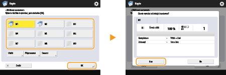 U funkce Kopie/Skenovat a odeslat můžete rovněž nastavit, aby stroj při vyvolání uložených nastavení nezobrazoval potvrzovací obrazovku.