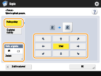Stiskněte <Nastavit> v <Přední strana> a zadejte vzdálenost posunu. Stiskněte tlačítka s označením směru nahoru/dolů/doleva/doprava a zadejte vzdálenost posunu s pomocí číselných tlačítek.