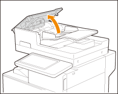 Zvedněte podavač a zkontrolujte polohu, kterou udává
