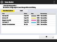 (Status Monitor), vises skærmbilledet Status Monitor, så du kan tjekke tonerniveauet eller andre statusindikationer.