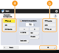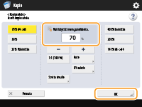Jos asetat <Aut.>, paperikoko on valittava manuaalisesti. Jos et valitse paperikokoa, kopiosuhde asetetaan automaattisesti vastaamaan paperikasettiin 1 asetun paperin kokoa.