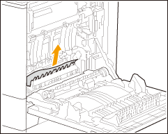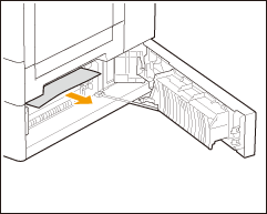 Als er papier is vastgelopen, trekt u dit voorzichtig naar buiten in de richting van de pijl.
