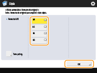 Ao copiar com um rácio de cópia idêntico para papel com o mesmo formato do original, as extremidades do original copiado poderão não ser completamente apresentadas. Para evitar isso, reduza tamanho da imagem carregando em <Rácio de cópia>