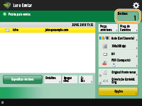 Para verificar o número total de destinos especificados.O número total de destinos especificados é mostrado no topo superior direito do ecrã. Isto permite-lhe confirmar que o número de destinos está correto antes de enviar.