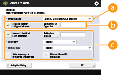 Ange ett lösenord när du scannar original för att aktivera funktionen för kryptering av PDF-filer som ska skickas/sparas. Detta minskar risken att filerna visas eller redigeras av andra.