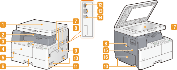 قم بتوصيل جهاز ذاكرة USB بالجهاز وطباعة البيانات مباشرة من جهاز ذاكرة USB. يمكن أيضًا حفظ المستندات التي يتم مسحها ضوئيًا باستخدام الجهاز مباشرة إلى جهاز ذاكرة USB.