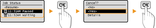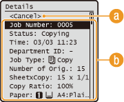 يتم عرض عدد النُسخ والإعدادات والتفاصيل الأخرى. إذا كنت لا تريد سوى التحقق من التفاصيل دون إلغاء عملية النسخ، فاضغط على