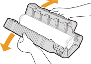 احمل خرطوشة الحبر بيد واحدة بثبات، واسحب شريط الأمان كليًا باليد الأخرى.