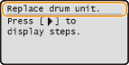 عندما تظهر إحدى الرسائل الواردة أدناه على الشاشة، عندئذٍ يلزم استبدال وحدة الأسطوانة. * للحصول على المزيد من المعلومات حول استبدال وحدة الأسطوانة، يرجى الاتصال بوكيل Canon المحلي المعتمد.