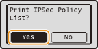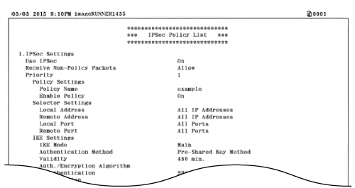 يمكنك طباعة قائمة للتحقق من أسماء السياسة وإعدادات IPSec المُسجلة حاليًا في الجهاز.