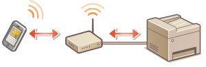 قم بتوصيل جهاز محمول بالجهاز عبر موجه شبكة محلية (LAN) لاسلكية. للتعرف على كيفية إعداد وتشغيل موجه الشبكة المحلية اللاسلكية والأجهزة المحمولة، انظر أدلة التعليمات الخاصة بالأجهزة أو اتصل بالجهات المصنعة.