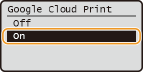 إذا أردت تعطيل وظيفة Google Cloud Print، فحدد <Off>.