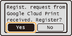 يمكنك أيضًا تسجيل الجهاز من جهاز محمول أو Google Chrome*. يعرض الجهاز شاشة التأكيد التالية قبل إتمام التسجيل. اضغط على <Yes> لإتمام التسجيل.