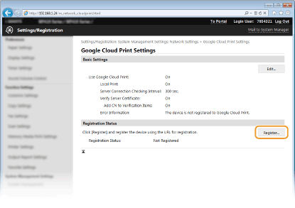 فأنت بحاجة إلى تمكين وظيفة Google Cloud Print. انقر فوق [Edit...]، وحدد خانة الاختيار [Use Google Cloud Print]، ثم انقر فوق [OK].