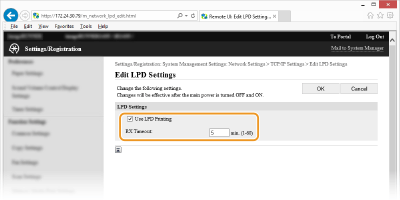 حدد خانة الاختيار للطباعة من خلال RAW. قم بإلغاء تحديد مربع الاختيار عند عدم استخدام طباعة RAW. [RX Timeout]