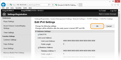 يجب تحديد مربع الاختيار [Use IPv6] لتكوين الإعدادات. تعيين عناوين IPv6